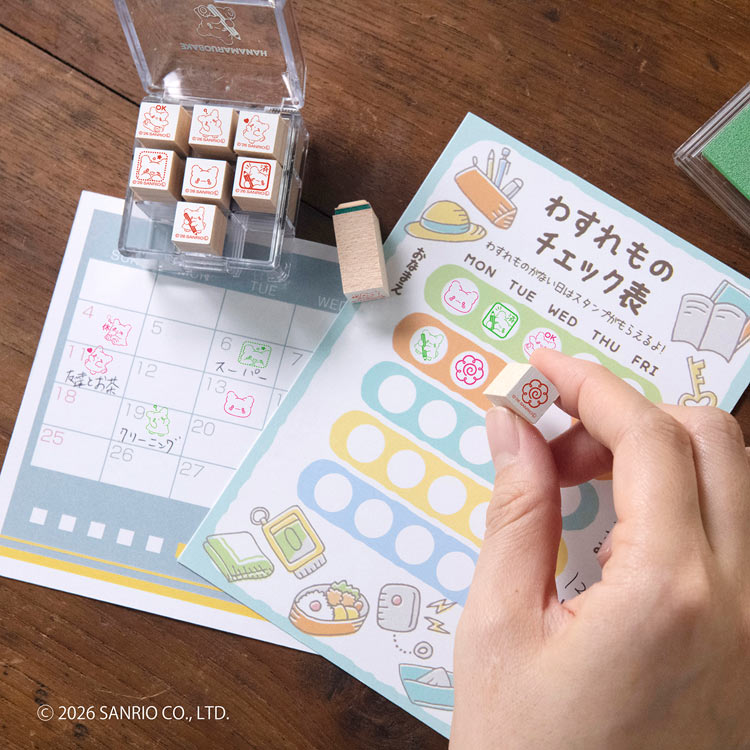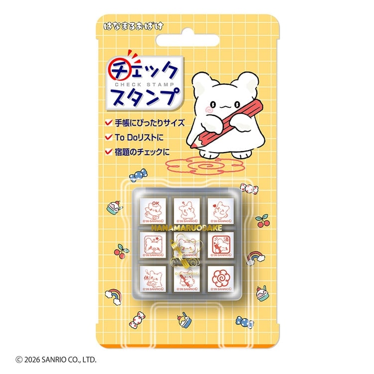 【雑貨】【スタンプ】【チェックスタンプ】【キャラクター】【はなまるおばけ】【202602】【色:ホワイト】【色:レッド】