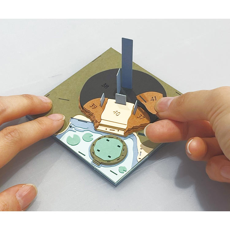 ペーパーシアター(ツミカサ)は、レーザーで精密にカットされた色紙を何層にも重ねていき、作品のシーンを(ジオラマ)として作り出せるクラフトキットです。