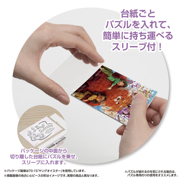 従来のジグソーパズルとは違い、お部屋に飾らず、専用ケース(別売)で持ち運びます。